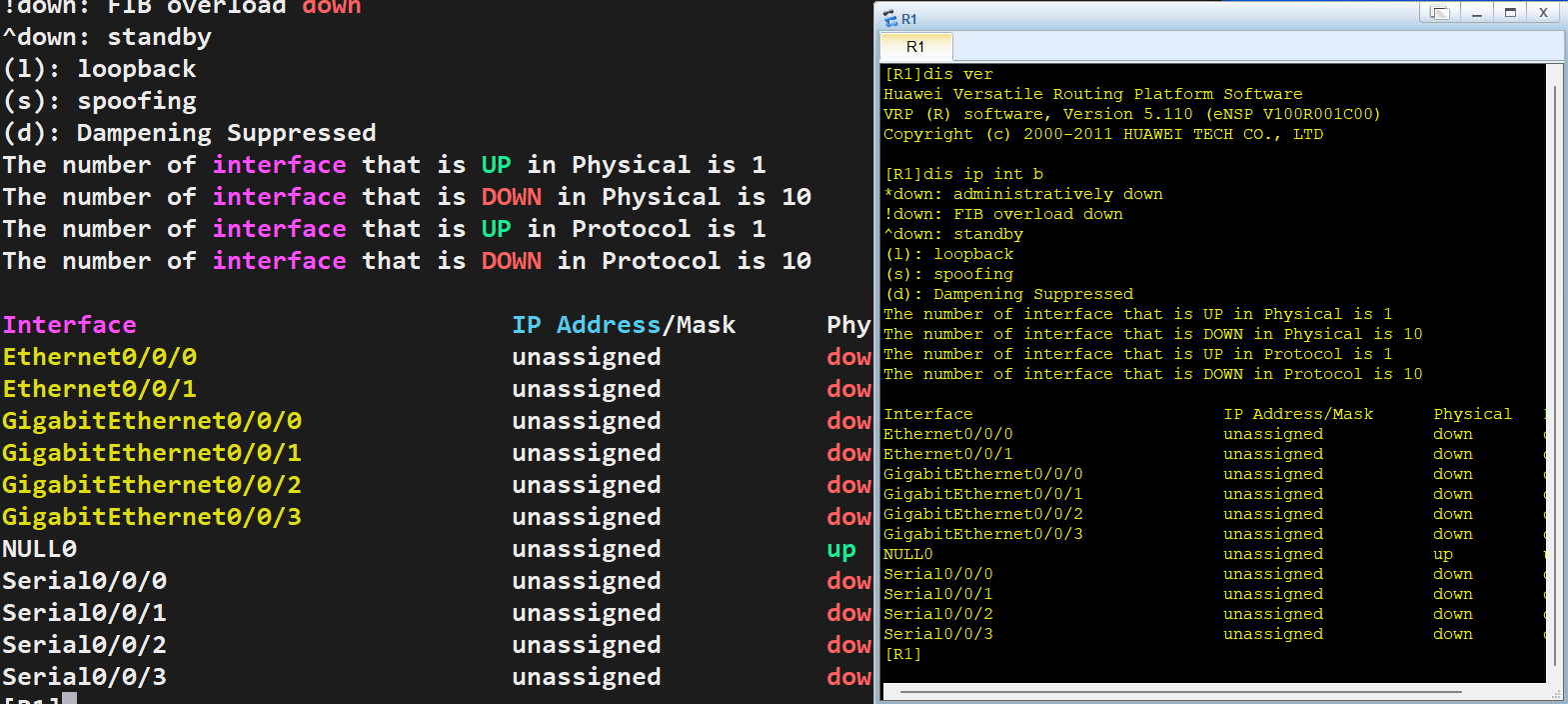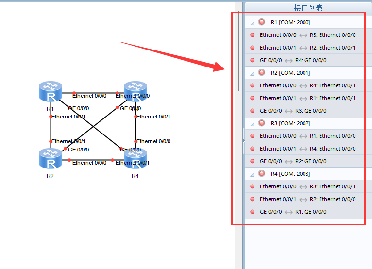 首先在ensp中,是可以看到所有设备的接口列表的,如图所示。