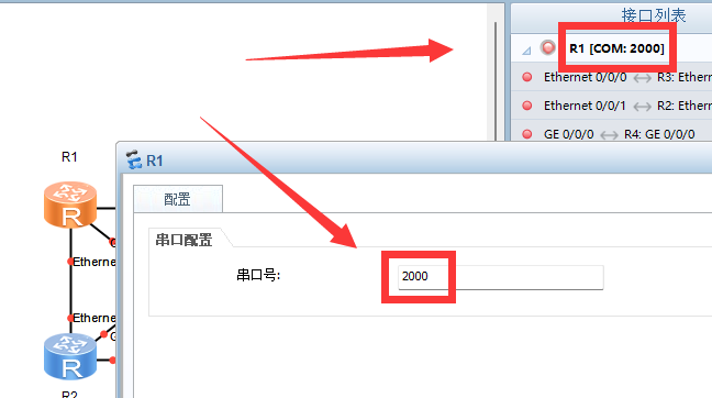 打开窗口后可以看到接口列表中有当前所有设备的所有接口及设备串口号,如图所示。