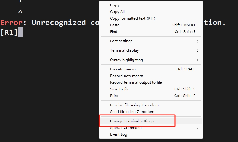 在窗口中右键点击change terminal settings